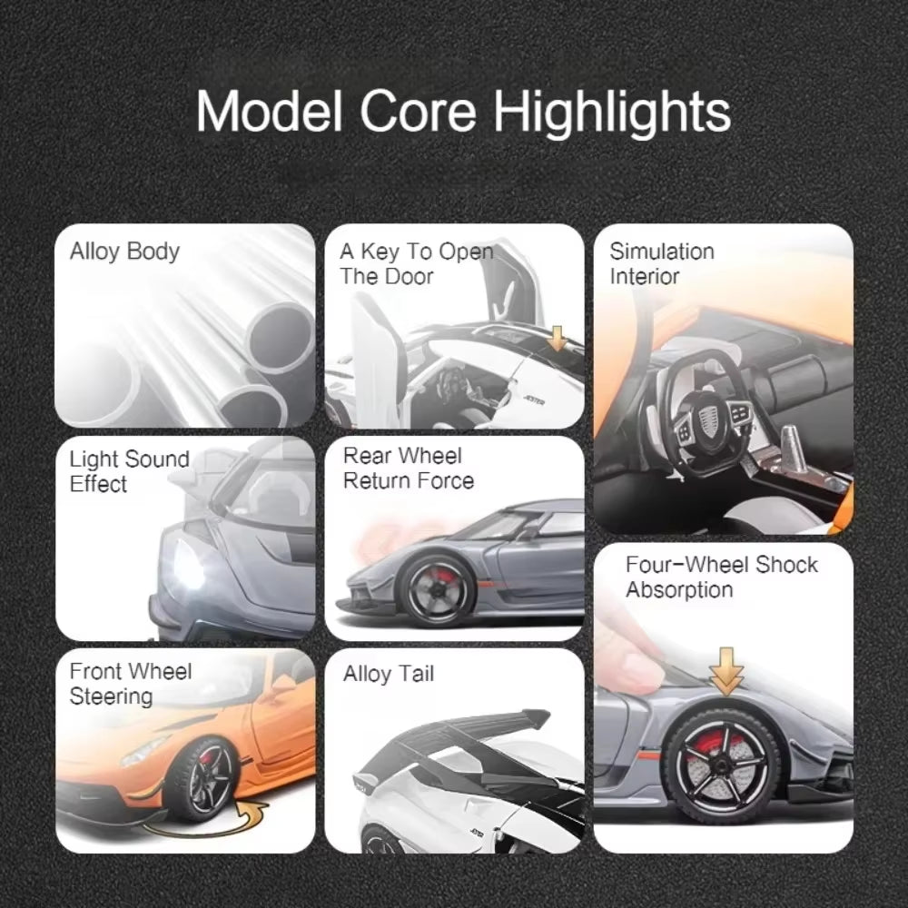 1:22 Scale Jesko Super Car Model Toys Metal Diecast Light Music Pull Back Sports Cars Models Collection Racing Vehicle Gift Boys