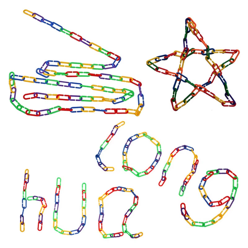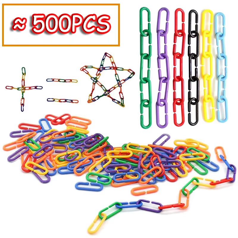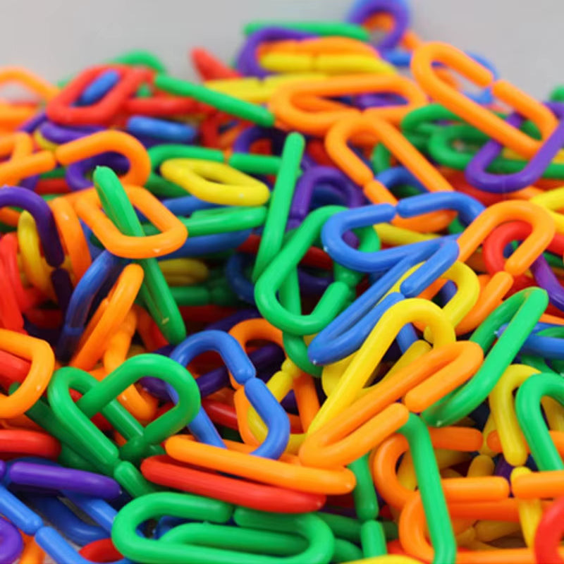 60PCS Kids Geometric Chain Linked Buckle Building Block Educational Toy Rainbow Connected Buckle Color Cognitive Educational Toy