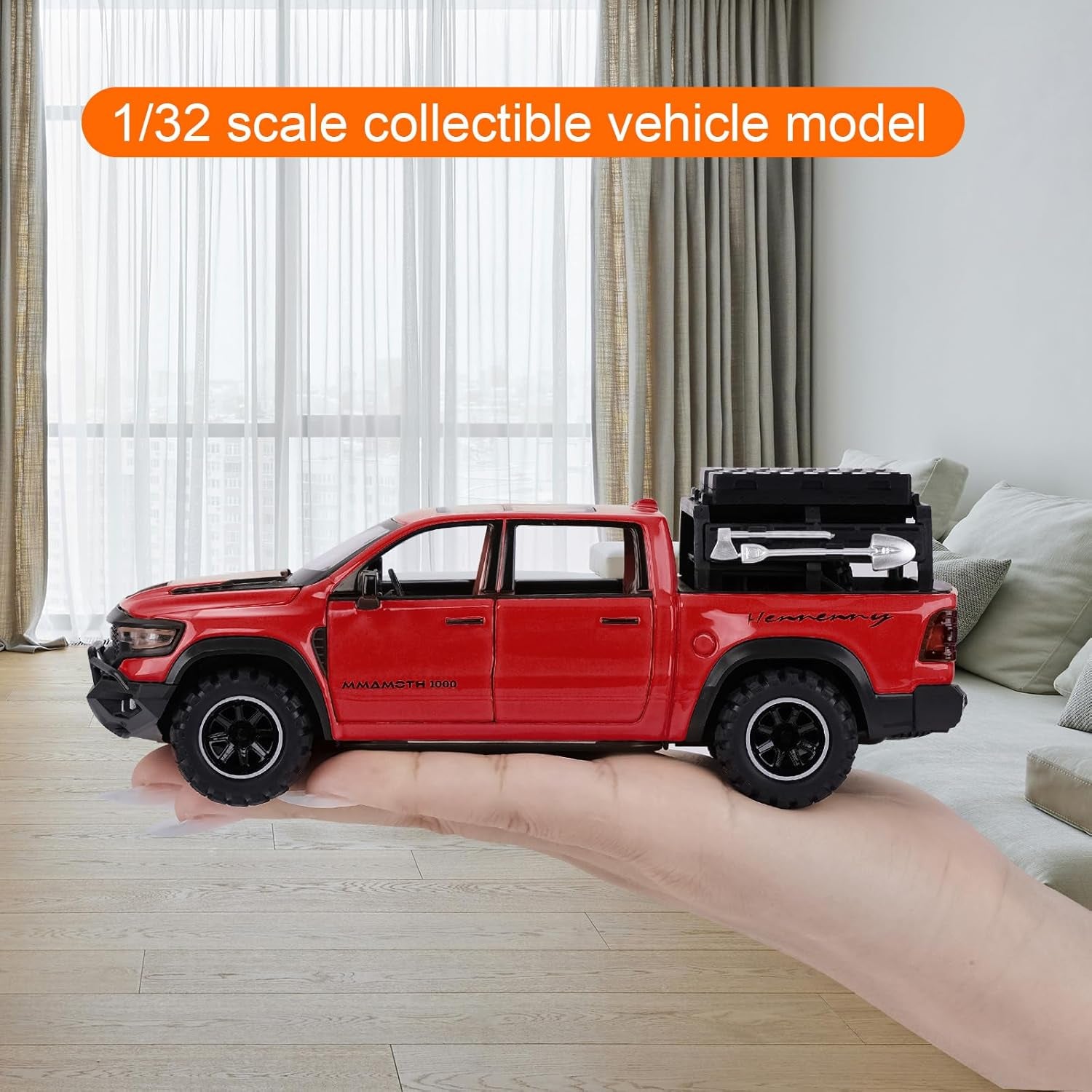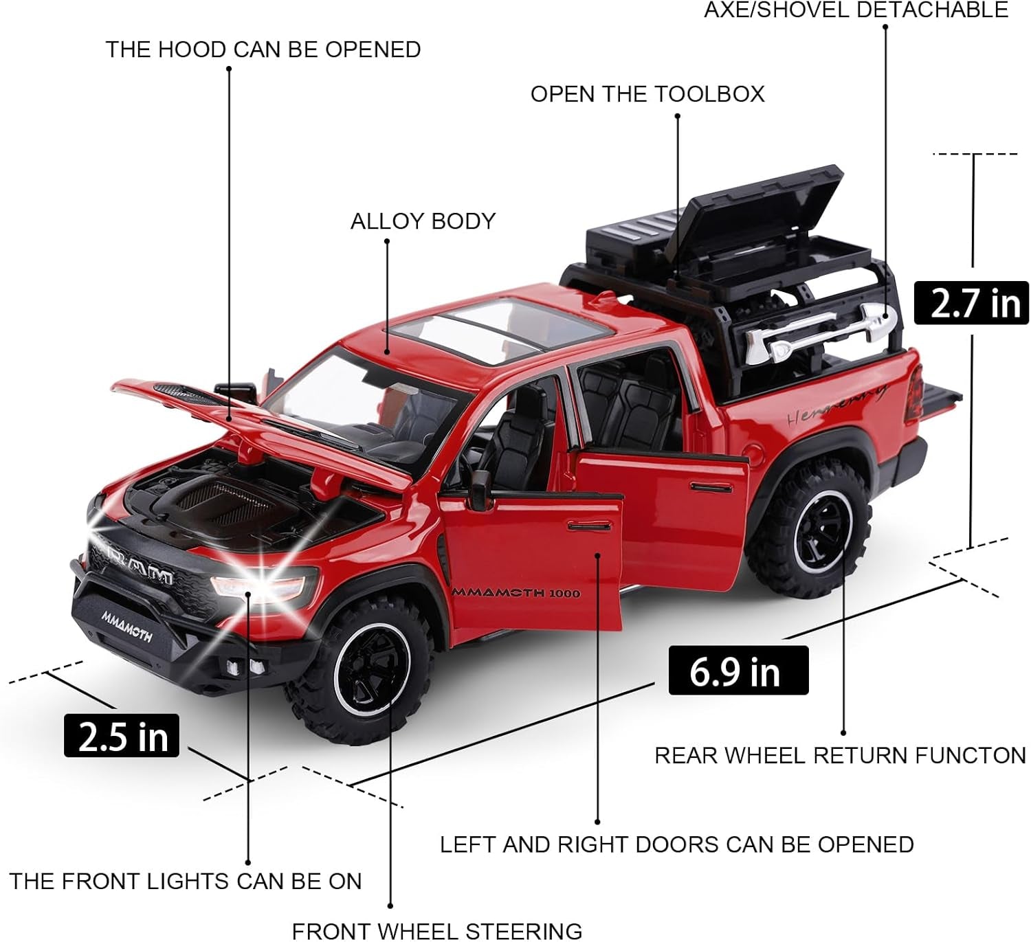 The SASBSC ram truck toy model boasts a detailed and realistic design, and the Ram 1000 Trx pickups come in red, black and yellow, suitable for boys trucks ages 3-6.