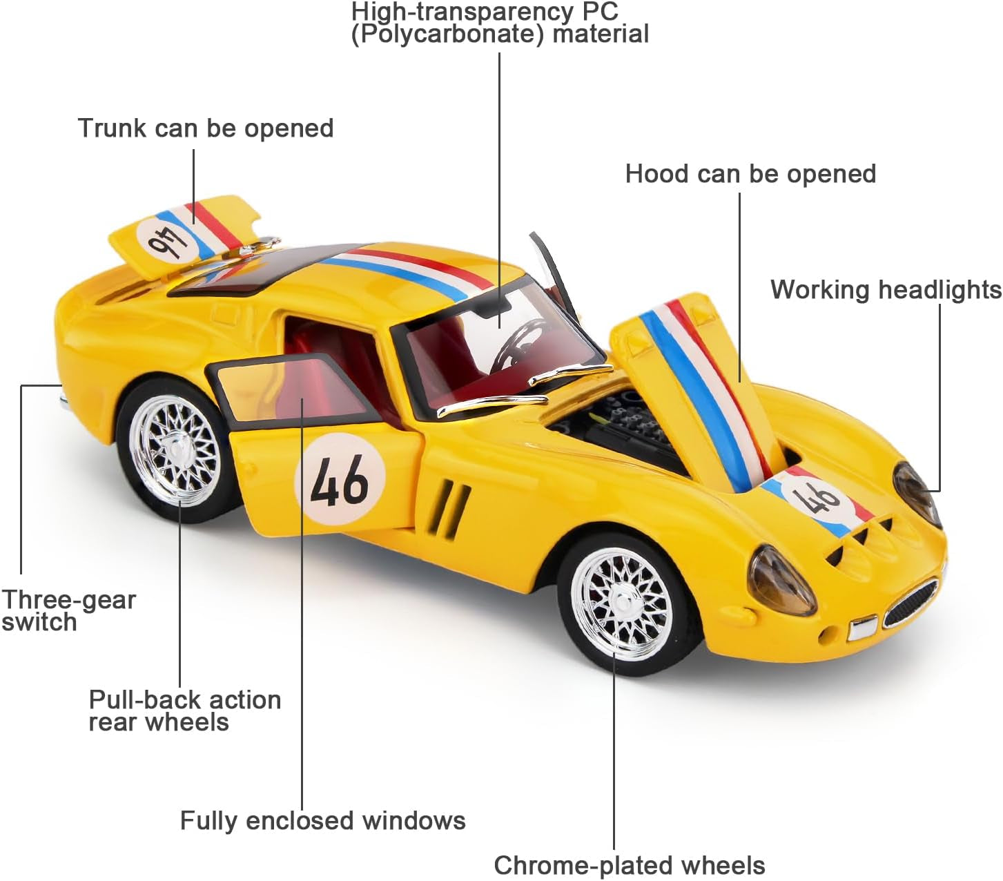 Toy Ferrari 250 GTO Model Cars 1:32 Scale Diecast Pull Back Vehicle